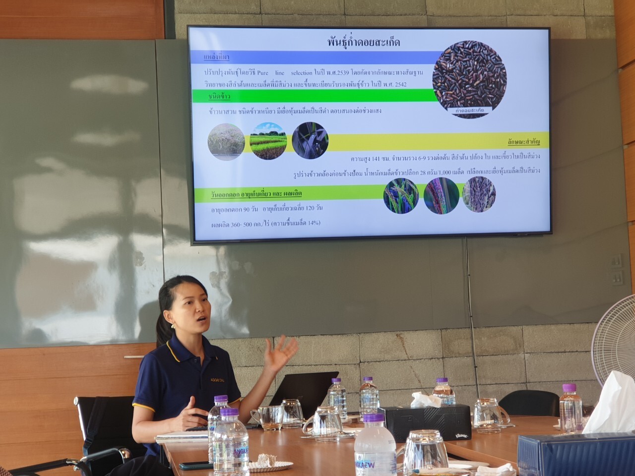 ดร.สุภาภรณ์ ญะเมืองมอญ นักวิจัย เป็นวิทยากรให้ความรู้ด้านการปลูกข้าวคุณภาพสูงและการจัดการแปลงนาที่เหมาะสม